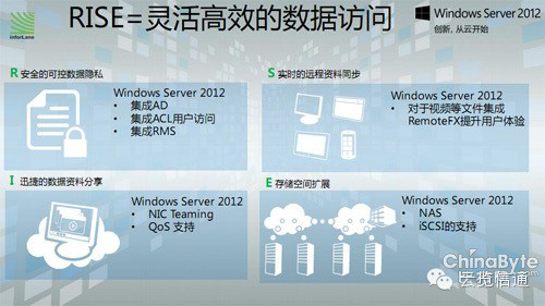 另一方面,Windows Server 2012还能够真正地把桌面虚拟化做得非常完整,非常高效和兼容,非常易于部署,数量也可以根据实际项目的需求弹性部署。
