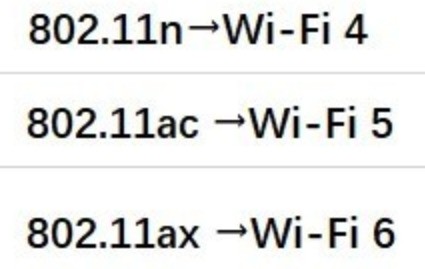 在说2.4G和5G频带之前,我们先简单了解一下WIFI的类别,Wi-Fi联盟之前给Wi-Fi重新命名了,802.11ax协议就是Wi-Fi 6,802.11ac就是Wi-Fi 5,802.11n协议是Wi-Fi 4。