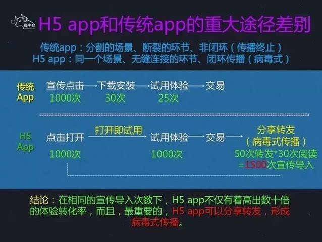 所以这其实是分割的场景、断裂的环节,没有形成闭环。传统APP将宣传导入在微信、网页中,用户看到宣传,觉得产品不错,就进入APP商城里下载,这款产品就进入了用户桌面。