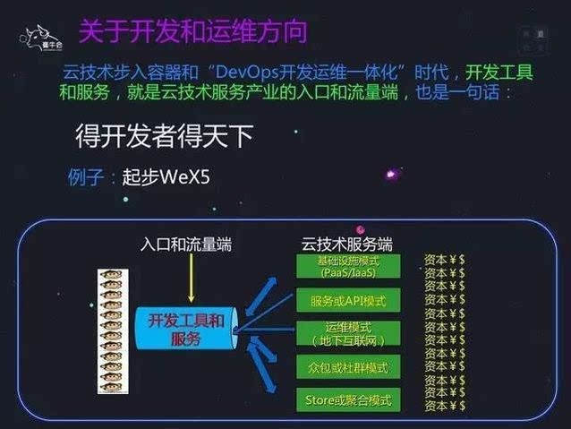 云技术步入容器和“DevOps开发运维一体化”时代,开发工具和服务,就是云技术服务产业的入口和流量端。实际上,起步WeX5正是聚焦于开发工具和服务。
